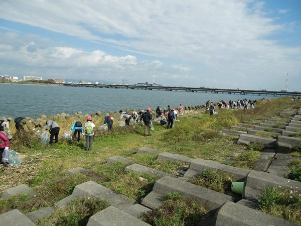 このクリーンアップ活動は、1880年に創業した同社が2012年からはじめた清掃活動で、今回が10回目。当日は、従業員とその家族、此花区役所・此花区の「このはな元気!?区長と歩こう会」メンバー、「大阪海さくら」メンバーの計170人が参加し、45リットルのごみ袋190個分のごみを回収した。