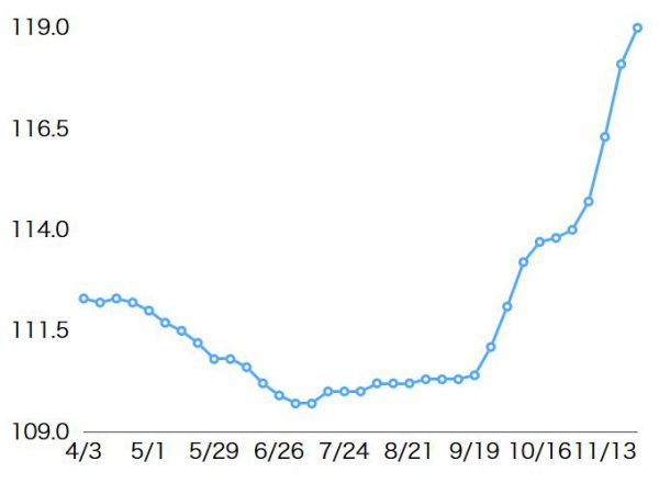 | 地域 | 11月27日(単位:円) | 11月20日(単位:円) | 上昇率 |