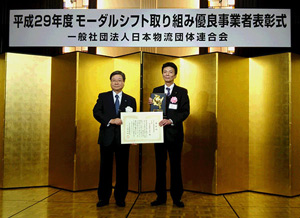環境・CSR日本通運は29日、日本物流団体連合会主催で28日に開かれたモーダルシフト取り組み優良事業者表彰で、「ビール製品の鉄道コンテナ輸送へのモーダルシフト」がモーダルシフト最優良事業者賞大賞を受賞したと発表した。