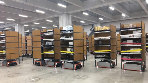 ニトリホールディングスとの納入契約に基づき、西日本通販発送センターで、インドのロボットベンチャー企業GreyOrange(グレイオレンジ)社のバトラー79台が稼働を開始したもので、ホームロジスティクスでは、ロボットがセンター内を動き回ることで商品の入出庫、保管業務の自動化・省人化の実現を目指す。