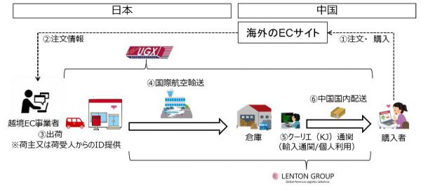 EC日本郵便は1日、同社出資の国際物流事業者レントングループと連携し、中国の越境EC向けにクーリエ通関、事前電子データによる通関を利用して「ゆうグローバルエクスプレス」(UGX)による中国個人宛ての配送サービスを開始すると発表した。