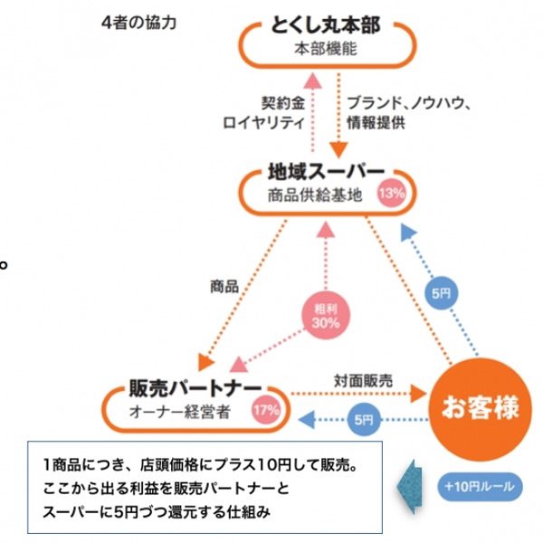 とくし丸は、日本全国のスーパーマーケットと提携し、地域の過疎化や核家族化によって日常の買い物が困難になった「買い物難民」や高齢者層を主な利用顧客とする「移動スーパー」の仕組みを提供する事業を行っている。39都道府県に展開、71社のスーパーマーケットと提携し243台が稼働している。
