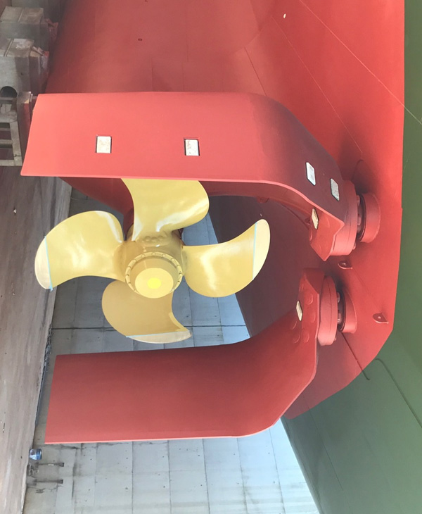 また、低速時にはプロペラの水流を変えてスラスターの働きをすることにより、高出力のバウスラスターと相まって、離着岸時性能を飛躍的に向上させた。さらに、プロペラの後ろの障害物がなくなったことで、船体振動・騒音を低減した。