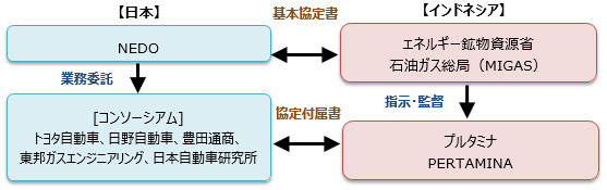 実証事業を推進するため、トヨタ、日野、豊田通商、東邦ガスエンジニアリング、日本自動車研究所の5者のコンソーシアムは、NEDOと近日中にそれぞれ委託契約を結ぶとともに、インドネシア国有石油会社であるプルタミナ社と共同で事業を推進していくため、協定付属書を締結する。