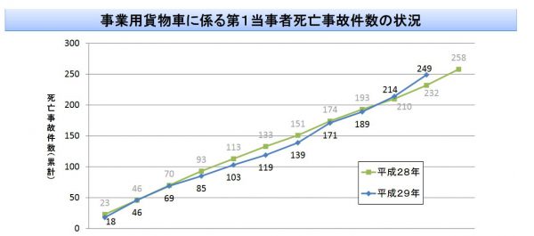 一方、1-9月の交通事故分析結果によると、期間中に営業用トラックが第1当事者となった死亡事故件数は189件で、年間252件ペースとなっていることがわかった。