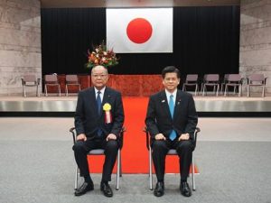 ▲(写真左)横浜冷凍の吉川俊雄会長(右)石井啓一国土交通大臣