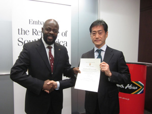 ▲写真(左)南アフリカ共和国Thulani Dlomo駐日特命全権大使(右)川崎汽船小榑執行役員