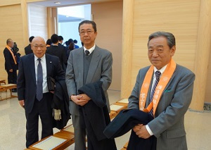 ことしの新年安全祈願は、新しくなった神楽殿で行われた。鳥海昭夫社長ほか8人が出席し、新しい年の交通安全と事業の繁栄を祈念した。