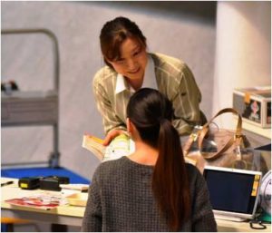 実技では、宅急便センターの受付窓口を再現した会場で9分間の競技時間内に、顧客3人が来店するという設定で、接客応対を行った。1人目は沖縄にボストンバッグを発送、2人目は宅急便センターで荷物の引き取り、3人目は不在時の荷物を受け取りに来た――設定で、顧客を待たせることなく、快適にサービスを利用してもらうためのコミュニケーションスキルを審査した。