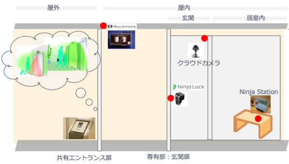 東京都大田区の賃貸マンション「ジニア大森西」で、共有エントランス部にオートエントランス解錠システム「NinjaEntrance」を、36室の全ての居室にNinjaLockを設置する。プロジェクトオペレーション専用のコールセンターが、電話による各事業者のサービススタッフの本人確認と、インターネットを経由した鍵の開閉操作を遠隔で行う。