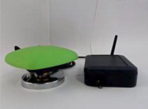 ▲(写真左)GPSアンテナ(右)補正信号送受信機