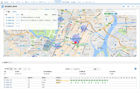 2015年秋から営業車両やバスの運行管理で利用実積を積み重ね、16年から建設・物流業務を中心に「作業の効率化」や「コスト削減」の目的で利用されている。