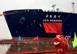 商船三井は1日、中国遠洋海運集団(CCSC社)と中国石油化工股フン(SINOPEC社)の3社の合弁会社が発注したLNG船「CESI WENZHOU」が竣工したと発表した。1月31日に上海の滬東中華造船集団(Hudong社)で竣工した。