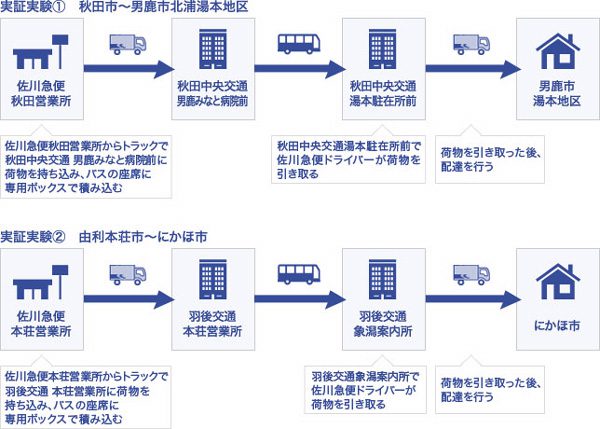 ロジスティクス佐川急便は9日、秋田県で秋田中央交通、羽後交通の路線バス2社と連携し、貨客混載事業の実証実験を行うと発表した。