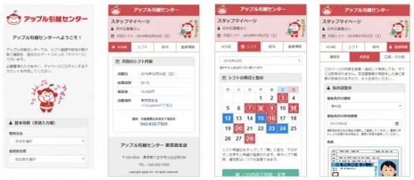 スタッフにとっては、スマートフォンで新規スタッフ登録の応募ができるようになる。登録後にマイページにアクセスをすればシフトの空き状況が一目で分かり、出勤を希望する日をその場で申請できる。また、自分の出勤日が分かるため、間違って出勤したり、休んだりといったミスを防ぐ。