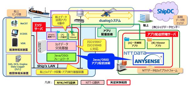 ロジスティクス日本郵船、MTI、NTT、NTTデータの4社は15日、日本郵船グループの内航船「ひだか」で船舶IoTの次世代プラットフォームに関する実証実験に成功した、と発表した。
