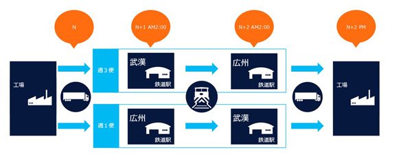今回、武漢-広州間の内陸鉄道を活用することで、チャータートラックよりも費用を抑えられるだけではなく、定時でのサービス提供が可能になる。また、従来のトラック輸送から当サービスへの切り替えによって、「今後中国で厳格化が予想される、排ガスなど環境規制への対応にも配慮できる」と考えた。