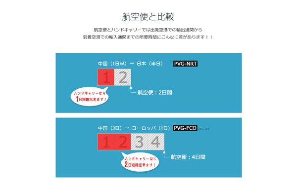 中国出張を円滑に終えるため、こうした事業者のサービスに対する需要は高まりつつあり、同社も「正式なサービスメニューとして扱っていなかった」という携行品の「輸出入通関代行」を“ハンドキャリー通関サービス”としてこのほどメニュー化。日本に拠点を持ち、現地でも日本語と日本企業向けの業務に精通したスタッフが対応できる強みから、利用者が伸びている。