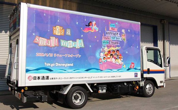 ロジスティクス日本通運は20日、東京ディズニーランドで提供しているアトラクション「イッツ・ア・スモールワールド」がリニューアルオープンを迎えることを記念して、12日から来年の3月までラッピング車両の運行を開始すると発表した。