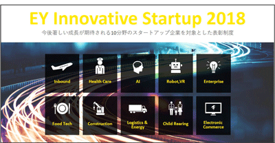 EYイノベーティブスタートアップ2018は「今後、著しい成長が期待される10分野のスタートアップ企業」を対象とした表彰制度で、日本有限責任監査法人が企画。今回は21社が選ばれた。