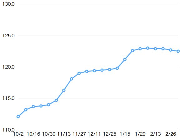 | 東京 | 124.6 | 124.4 | 0.2% |