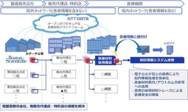 4月までにソリューションの有用性を評価し、18年度内をメドに医療材料領域の製造販売業者、販売代理店・特約店が共同で利用可能なプラットフォームサービスの提供を開始する。将来的には医療材料の使用実績と患者情報を紐付けて、医療機関のデータ分析にも利用できるサービス展開を目指す。