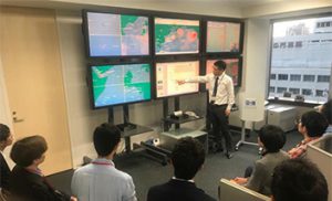 ▲商船三井安全運航支援センターで船のオペレーションを説明する様子