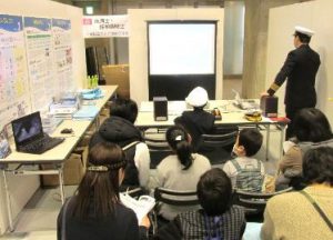 船主協会の職業体験・展示ブースには、2日間で300人が訪れ、120人がブース内に設置した操船シミュレータで来島海峡周辺の操船を体験した。また、子供用船長制服やパネルの展示も行い、訪れた学生や保護者の質問にもそれぞれ対応した。訪問者のなか「将来は船で働きたい」と話す学生もいた。