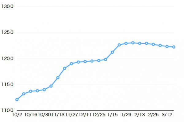 | 東京 | 124.6 | 124.1 | 0.4% |