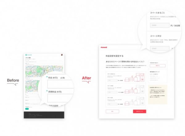 リニューアルでは、デザインを「最適化」し、レビューをアイコンで視覚的にわかりやすい表示にしたほか、ホスト登録を4ステップにすることで手続きを簡素化、検索エリアにある空きスペースが一覧表示されるようになった。