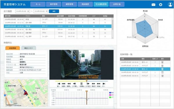 映像APIは、従来から提供している多彩なデータのやり取りが可能なデータAPIに、同社の通信ドライブレコーダーからアップロードされた映像データをファイル単位で取得するもので、映像だけでなく、危険挙動のリストも取得できるため、事故や危険運転時の映像を確認するシステムの構築などが可能。