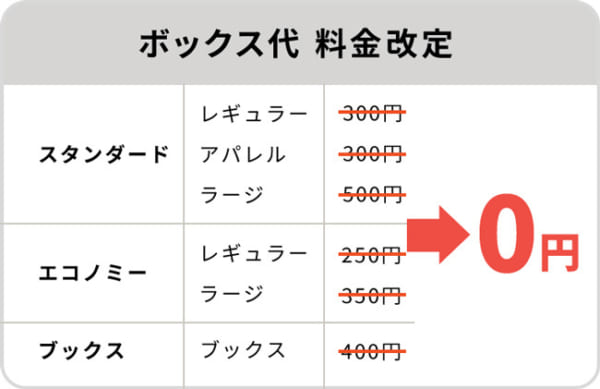 従来は1箱250円から500円かかっていた専用ボックス代が無料になる。ボックス代0円キャンペーンでは10箱までの制限が付いていたが、今後は制限なく無料で取り寄せることができる。