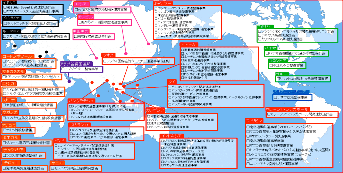 拠点・施設国土交通省は3月28日、海外へのインフラ輸出を官民一体で進めていく土台となる「インフラシステム海外展開行動計画2018」を決定し、「今後注視すべきプロジェクト」として83件を選定した。前年度の行動計画を更新した。