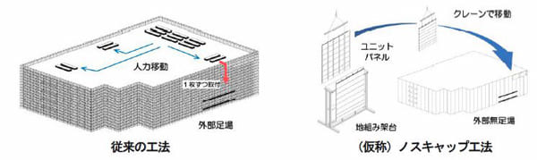 今後、深刻化する人手不足の解消に向けて、大和ハウスとフジタは、共同開発したノスキャップ工法を大型施設開発に採用し、施工現場の労働環境改善を目指す。