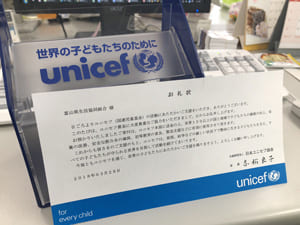 1月から2月にかけてユニセフ新春の取り組みとして行った「お年玉募金」と「カレンダーチャリティ募金」で集まった25万2150円と、その期間外に集まった3万3460円を送金した。