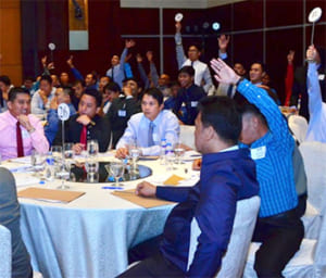 ▲ムンバイでの会議に先立ち挨拶する池田潤一郎社長