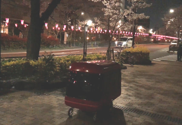 ZMPは24日、東京都文京区の同社オフィス付近で宅配ロボット「キャリロデリバリー」を用い、花見会場に宅配寿司を届ける実証実験を行い、その様子を撮影した動画を公開した。