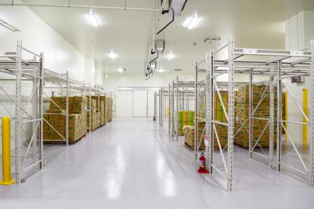 保管能力:チルド庫90トン(1万3000ケース)、冷蔵庫345トン(4万8000ケース)、常温庫120トン(1万7000ケース)、総計555トン(7万8000ケース)