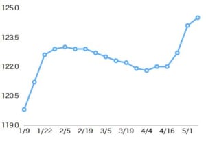 | 大阪 | 123.5 | 123.1 | 0.3% |