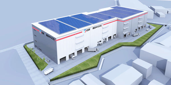 建物は1階にトラックバースを備え、スピーディーな仕分・発送が可能な物流運営の効率性を重視した建築仕様。最大4テナントに区画を分割できる。24時間稼働が可能で、環境面では「CASBEE(環境総合評価システム)Aランク」の取得を予定しているほか、倉庫・事務所・共用部すべてにLED照明を設置。太陽光発電システム、緑化計画など、再生可能エネルギーを積極的に活用する。