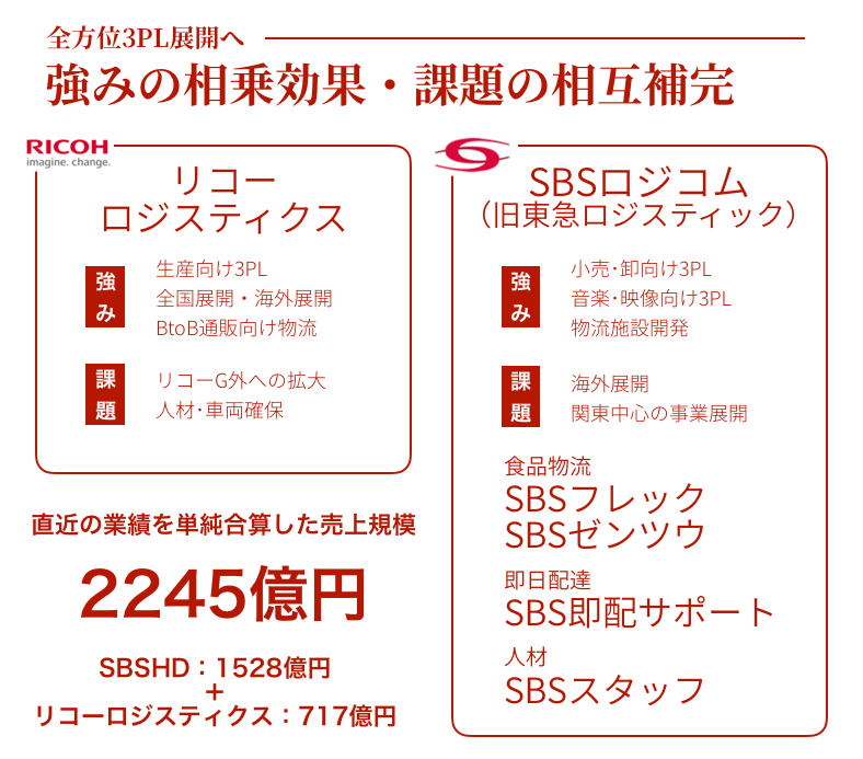 ――リコーロジは生産・調達分野に強く、SBSロジコムは保管・流通・販売分野に強いが、双方の顧客から包括受注できるようなシナジーを想定しているのか。