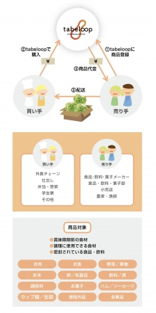 売り手は、各地域の生産者、食品メーカー、食品卸売業、小売業などで買い手は、居酒屋やレストランなどの外食店や、お弁当、惣菜を扱う中食、こども食堂、学生寮などの食堂、学園祭、地域の祭りなど食品の使用量の多い企業・団体などを想定している。これまで食べることができるが、廃棄されてきた食品をtabeloop上で販売することで、買い手と売り手を結びつけ、食品ロスの削減に貢献する。