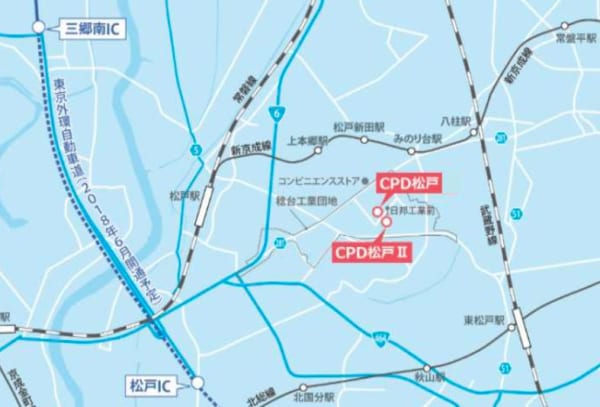 CPDがアセットマネジメント業務を受託し、同社と三菱UFJリース、東急不動産が共同出資する松戸2ロジスティクス合同会社を建築主として着工した。なお、3社が出資する松戸ロジスティクス特定目的会社では、同施設に近接する「(仮称)CPD松戸物流センター」の建設も進めている。