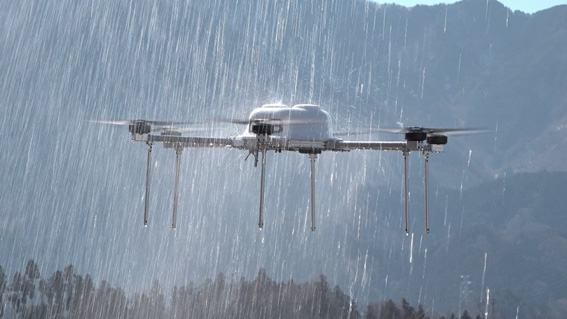 今回の実験は防災科研、国産ドローン機体の開発・製作の面で高い技術力を持つイームズロボティクス、イームズラボと協力し、ドローンが遭遇する極端な気象現象のうち「大雨」に注目。1時間に最大で300ミリもの大雨に遭遇した場合の機体耐性と挙動を評価するとともに、ドローンに対する大雨時の飛行可否判断の指標「大雨アラート」を検討するために実施する。
