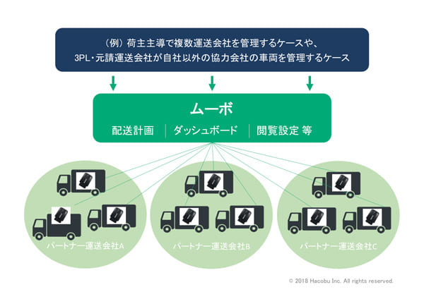 同社はこれらの新機能により、協力会社を含むなど運送会社をまたがる車両の管理や、配送遅延状況の一括管理などが効率化されると見ていて、具体的には荷主主導で複数運送会社を管理するケースや、3PL・元請運送会社が自社以外の協力会社車両を管理するケースなどを想定している。
