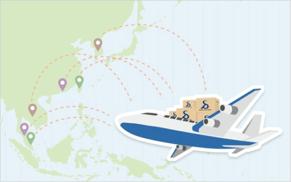 これにより同サイトでは、物流量の最も多いアジアの6か国で配送手段として、船便と同等以下の配送料金で航空便の短納期配送が可能なECMSエクスプレスを利用できるようになる。