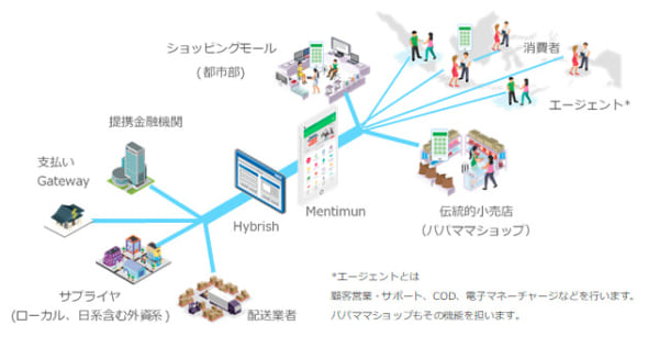 具体的には、250万店舗あるIT化が進んでいない、いわゆるパパママショップ(小規模小売店)に対して、インディバラグループのeコマース「Mentimun」(メンティムン)やスマートフォン用POSアプリケーションと、日本ユニシスのERPソリューション「Hybrish」(ハイブリッシュ)の卸売り機能を組み合わせた流通小売ビジネスプラットフォームを提供し、流通の効率化実現を目指す。