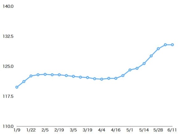 | 地域 | 6月11日(単位:円) | 6月4日(単位:円) | 上昇率 |