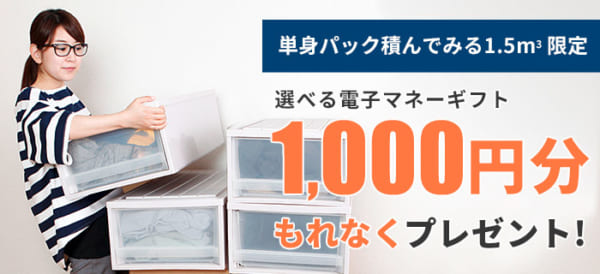 このプランは、一人暮らしの顧客ニーズから算出したサイズ、コストパフォーマンスを考慮した引っ越しプラン。期間中に同プラン申込者を対象に、もれなく「選べるe-GIFT1000円分」をプレゼントする。