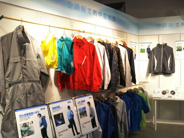 空調服は、作業着に付いた小型ファンで服の中に外気を取り入れ、体の表面に大量の風を流すことにより、汗を気化させて体を冷やすもので、エアコンの効かない場所での作業など真夏の熱中症対策に適した商品となっている。